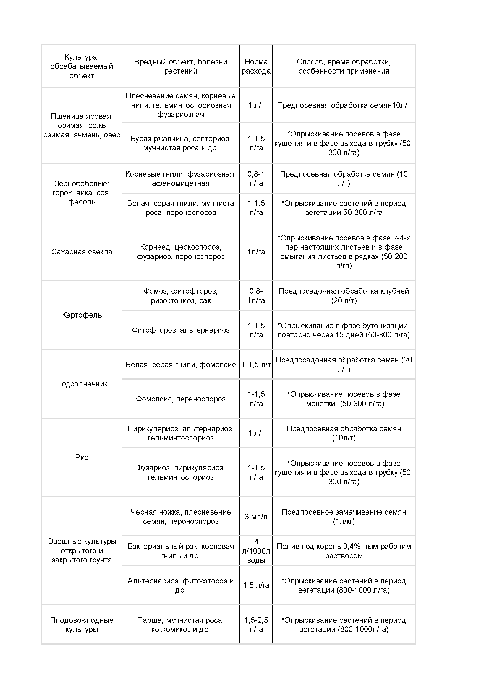 Использование биопрепаратов позволяет повысить иммунитет и природную устойчивость растений к болезням, уменьшить химическую нагрузку и существенно снизить производственные затраты на протравливание. Также важной отличительной чертой микробиологических протравителей, в отличие от химических препаратов, является высокая длительность защитного периода от болезнетворной микрофлоры.