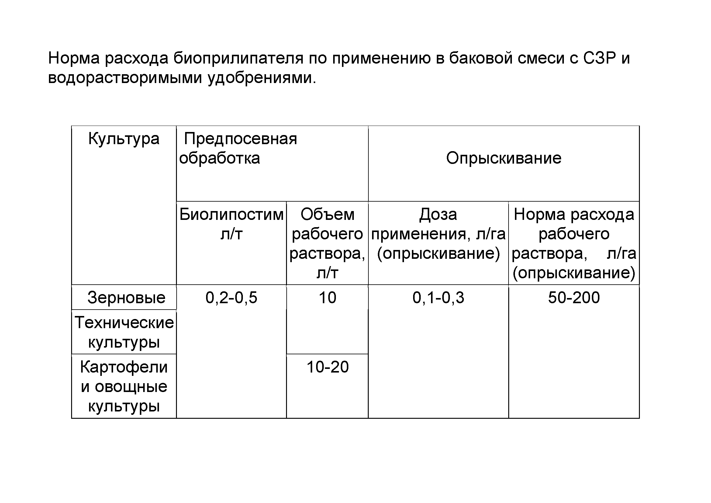 Биолипостим, основой которого являются растительные и бактериальные полисахариды, который нужно добавлять в баковую смесь при каждой обработке. Кроме того необходимо контролировать качество воды, используемой для приготовления рабочего раствора. Раствор должен быть слабокислым, иметь большую буферную ёмкость, способную удержать эту кислотность в баковой смеси при смешивании разных препаратов (СЗР, удобрения и т.д.), сохранять однородность и стабильность препаратов. Этого можно достичь при помощи регулятора кислотности Радужный, который к тому же снижает карбонатную жёсткость воды. Соблюдение этих правил повышает эффективность листовых подкормок и увеличивает урожай и его качество.