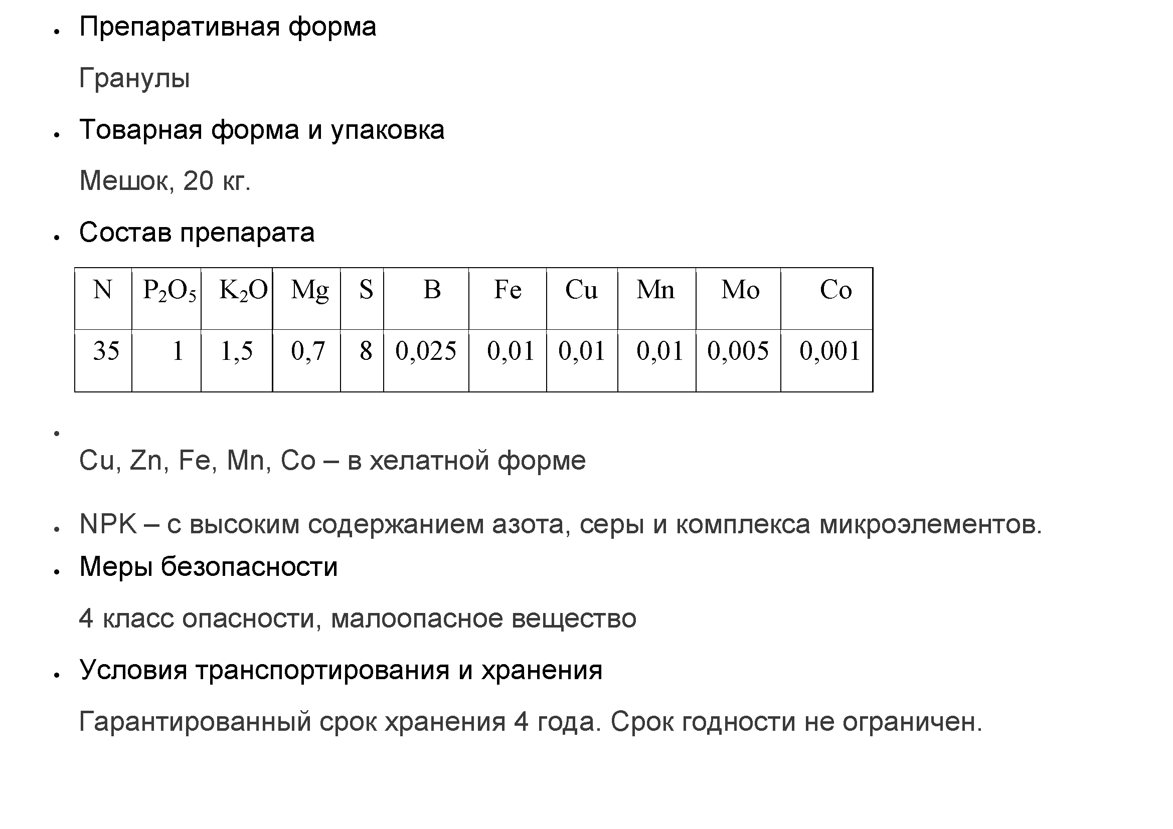 - в состав включены биоактивированные по молекулярному весу и составу гуматы калия – БМВ-гуматы, обладающие сильными антистрессовыми, ростоускоряющими, иммуностимулирующими свойствами;